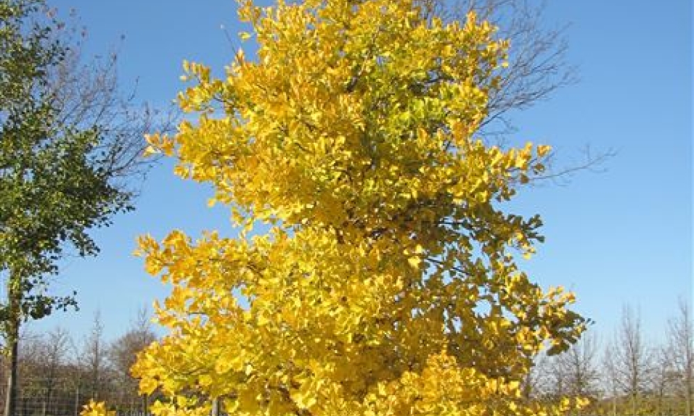 A true 150 million year old relic with distinctive fan-shaped leaves; this variety features a narrowly conical to columnar habit of growth and radiant golden yellow fall color; does not produce fruit; an excellent articulation tree for smaller landscapes.