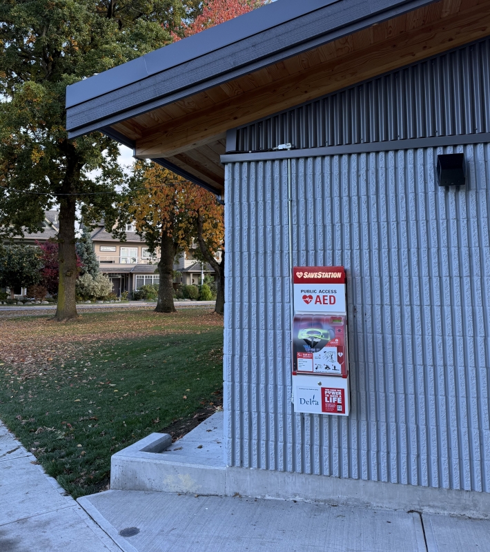 Delta strives to keep our parks and facilities safe and accessible for everyone. We’ve installed automated external defibrillators (AEDs) across our parks and community facilities. Outdoor units are housed in climate controlled, monitored cabinets so they’re ready to use 24 hours a day, while indoor units are available during each facility’s operating hours. Early intervention with CPR and an AED during a sudden cardiac arrest dramatically improves survival rates.