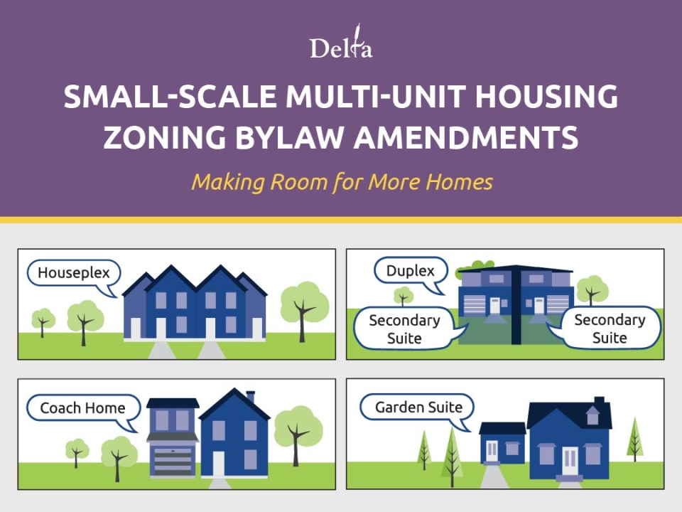 The City of Delta is inviting residents to share their views on proposed zoning updates that would make it easier to build small-scale, multi-unit housing (SSMUH) while ensuring new homes are livable for residents and compatible with existing neighbourhoods. The engagement runs from November 4 to 30, 2025, with opportunities to learn more and provide feedback online and at in-person events.