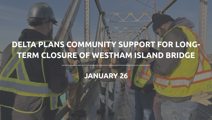 For the latest information on the emergency response and available supports, visit www.delta.ca/westhamislandbridge. Residents of Westham Island are invited to email WesthamIslandCommunity@Delta.ca to receive updates directly.