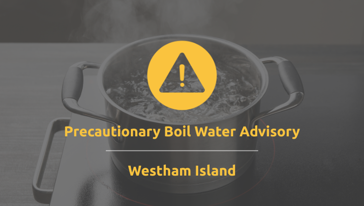 The City of Delta is issuing a precautionary boil water advisory for Westham Island, starting Friday, January 23. While the City conducts water sampling and assessments of the water system, Westham Island Residents are advised to use only boiled or bottled water for drinking, cooking, making ice, brushing teeth, washing ready to eat foods, washing dishes, or making infant formula.